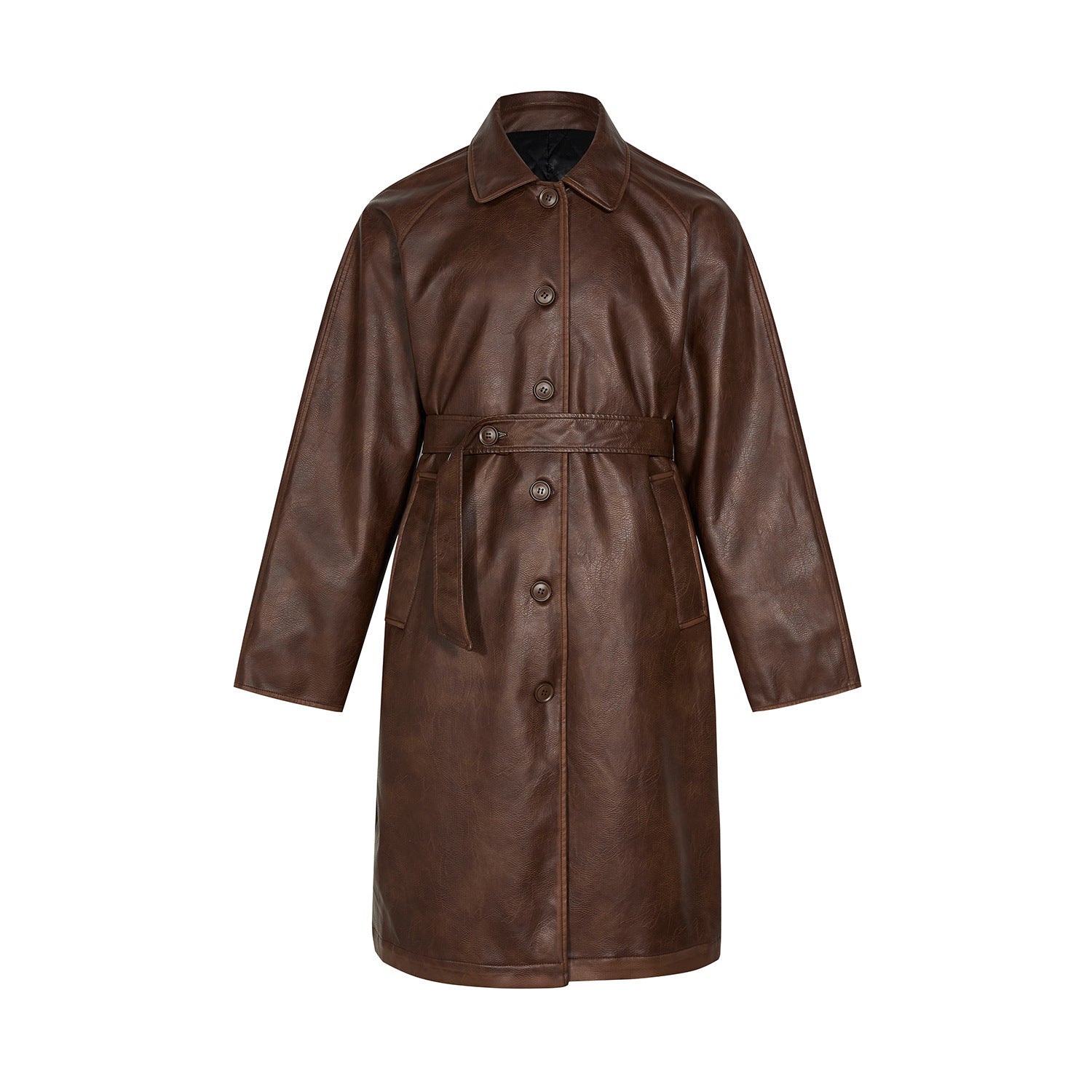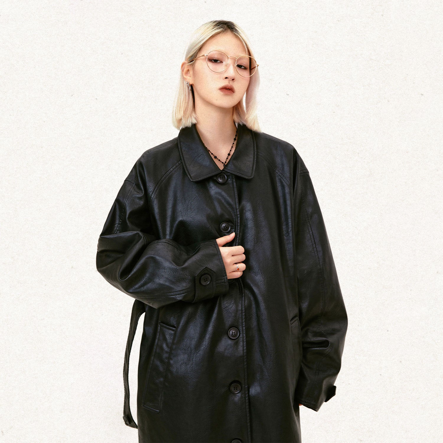 Leather Mid-Length Trench Coat — a bold, unisex design that blends streetwear confidence with timeless style. Made from premium PU leather, it offers a sleek finish with a relaxed, loose fit for easy layering and all-day comfort.