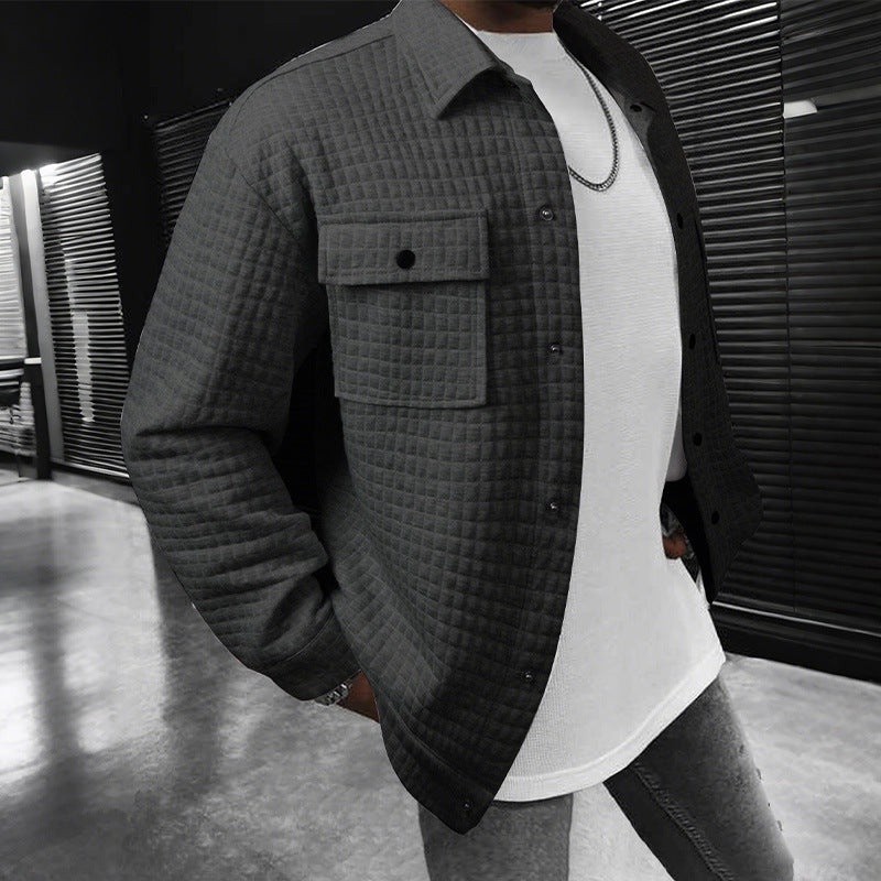 Men's Casual Jacquard Plaid Baggy Coat Shirt