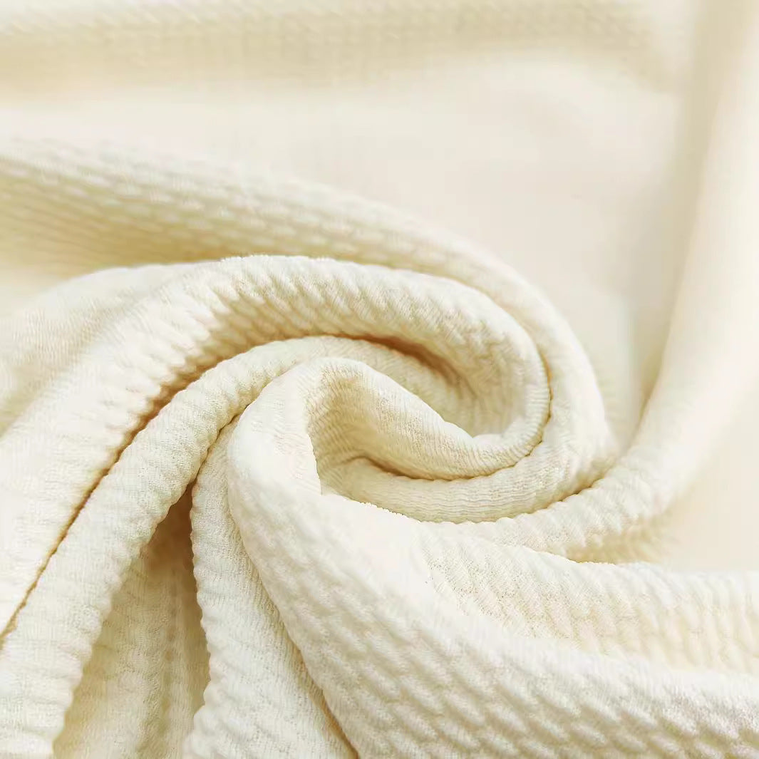 Waffle Collar Short Sleeve Suit Set in milky white. Featuring a breathable cotton blend fabric with a modern waffle texture, the suit includes a short sleeve top styled like a T-shirt and mid-length pants (fifth pants), perfect for casual yet polished looks.