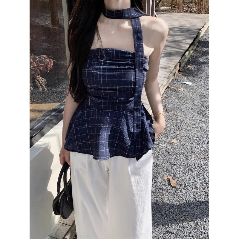 Retro Plaid Chenille Tube Top, crafted in soft, stretchy chenille and spandex blend for a comfortable and flattering fit. Designed with non-removable straps, this sleeveless bustier vest is perfect for parties, casual outings, or layered streetwear looks.